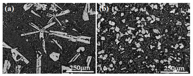 (a) Undequiable treatment; (b) after adding 0.3% Si-10P crystal seed alloy