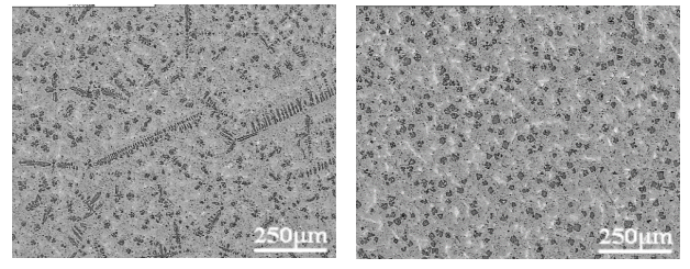 After adding a micro-Si-P crystal seed alloy to the Mg-Si alloy, the coarse primary crystal Mg2Si branches can be changed to a small dispersion, as shown in Figure 4-2.